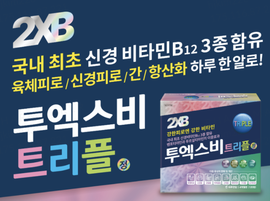 - 투엑스비 트리플은 B1, B2, B6, B12 등 대부분 비타민B 계열을 활성형과 병행해 파워풀하게 구성했습니다.